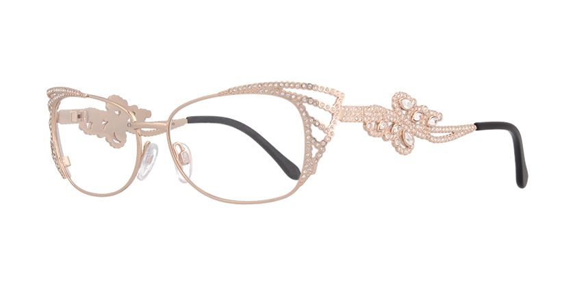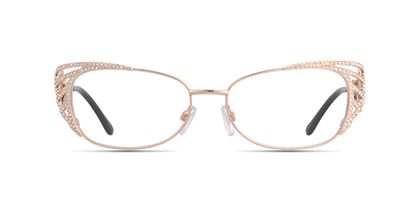 Stylish Rosso Fiamma eyewear with Swarovski crystal or stylish diamond glasses for elegant Women Prescription eyeglasses. Luxury fashion experience, add a little bling to your eyes. Ross Framma designers get inspiration for embellishments from fine Swarovski Crystal. Think of the expensive elements that make this pair of eyeglasses pop and sparkle. This rounded square frame features matte rose golden metal temples and adjustable nose pads will make you feel like something special.